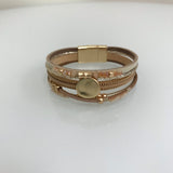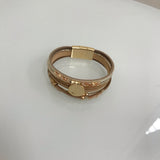 Leather Bracelet - Leather Tan Magnetic Clasp Bracelet Gold Detail FR-3042KA