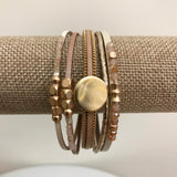 Leather tan layered bracelet with gold detail and beading FR-3042KA