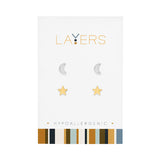 Center Court Layers Earring Gold Stars & Silver Moons Studs LAYEAR550S
