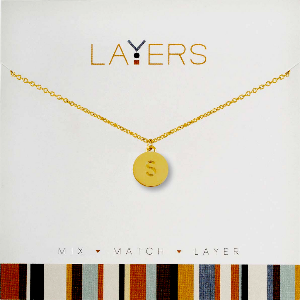 Center Court Layers Necklace Gold Initial “S” LAYSG This petite, gold-tone necklace from Layers has a circle with the letter “S” on its adjustable, drawstring chain. Mix and match multiple necklaces to create a layered look that complements any style with a flair that's totally you! The styling possibilities are endless!