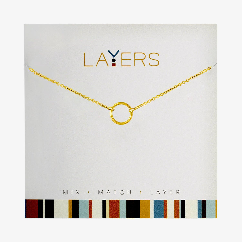 Center Court Layers Necklace Gold Open Circle LAY11G This petite, gold-tone necklace from Layers has a single open circle on its adjustable, drawstring chain. Mix and match multiple necklaces to create a layered look that complements any style with a flair that's totally you! The styling possibilities are endless!