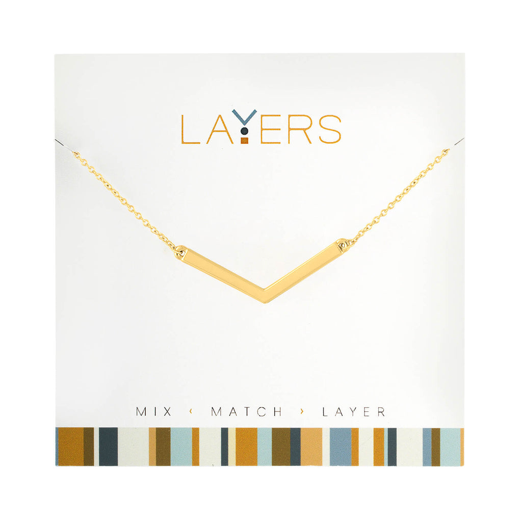 Center Court Layers Necklace Gold Wide V LAY07G. This petite, silver-tone necklace from Layers features an adjustable chain that's finished with a gold wide V shape.. Mix and match multiple necklaces to create a layered look that complements any style with a flair that's totally you. The styling possibilities are endless!