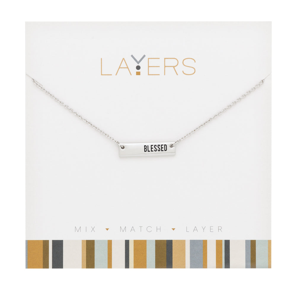 Center Court Layers Necklace Silver Bar “BLESSED” LAY533S. This petite, silver-tone necklace from Layers is adorned with a silver bar with the word BLESSED on its adjustable, drawstring chain. Mix and match multiple necklaces to create a layered look that complements any style with a flair that's totally you! The styling possibilities are endless!