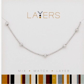 Center Court Layers Necklace Silver Beads LAY525S. This petite, silver-tone necklace from Layers has 5 small silver beads on its adjustable, drawstring chain. Mix and match multiple necklaces to create a layered look that complements any style with a flair that's totally you! The styling possibilities are endless!