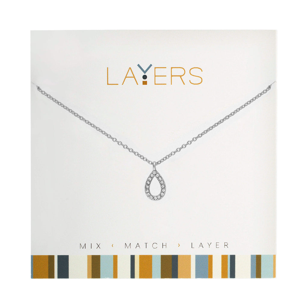 Center Court Layers Necklace Silver Crystal Teardrop LAY537S. This petite, silver-tone necklace from Layers has a silver and crystal teardrop on its adjustable, drawstring chain. Mix and match multiple necklaces to create a layered look that complements any style with a flair that's totally you! The styling possibilities are endless!