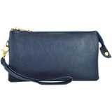Handbag Claire Medium Clutch in Denim Blue Durable Material for all Seasons Leather Feel Detachable Crossbody Strap and Wristlet Attachment