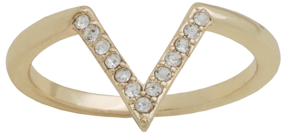- DaVinci Jewelry Gold Plated Stackable Crystal V Detail Ring Lay15