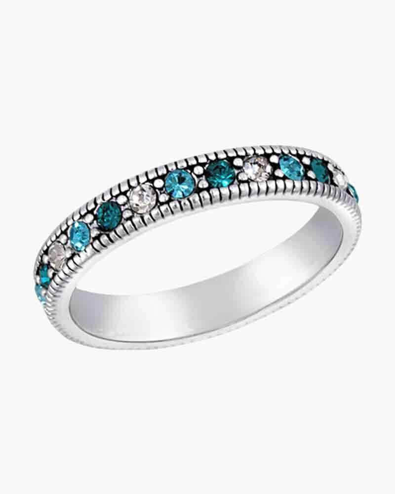- DaVinci Stackable Silver Ring Blue Crystal Round Stone Silver Stacks Ring