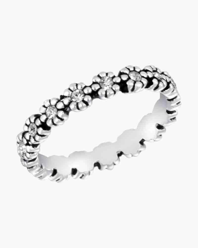 DaVinci Ring Crystal Flower Design Silver Stack Ring STK13-4