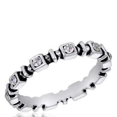 - DaVinci Stackable Silver Ring Crystal Square Detailed Band STK11-4