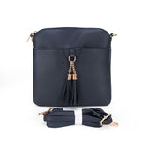 Handbag City Medium Crossbody Pocketbook Purse with Tassel in Navy Blue Zipper Closure Zipper Pocket Inside Outside Pocket has snap closure