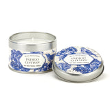 Michel Design Works Indigo Cotton Travel Candle has the freshness of linen with powdery floral undertones of violet, carnation, and lily of the valley. Their all-natural, 100% soy wax travel candle is nontoxic, biodegradable and clean burning. The handy, decorative, and versatile tin can be used at home or when traveling, indoors or out.