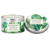 Michel Design Works scent of Palm Breeze brings up tropical marine greenery touched with peach, sandalwood, and melon. Their all-natural, 100% soy wax candle is nontoxic, biodegradable and clean burning. The handy, decorative, and versatile tin can be used at home or when traveling, indoors or out.
