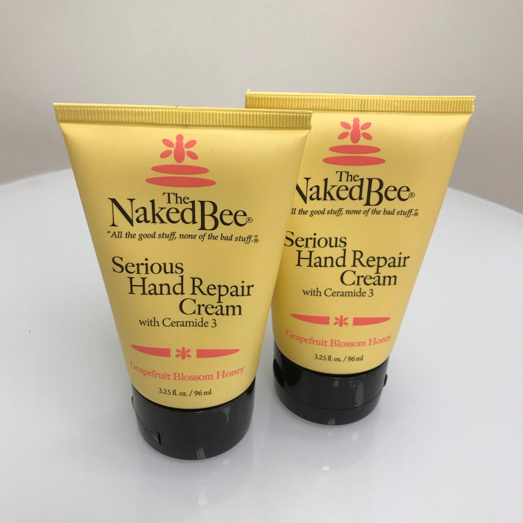 Naked Bee Serious Hand Repair Cream Grapefruit Blossom Honey. Shea butter and safflower seed oil promote healthy skin. Rich in anti-oxidents and made with honey and Ceramide 3 to soften and heal severely dry or cracked skin in our Grapefruit Blossom Honey scent.