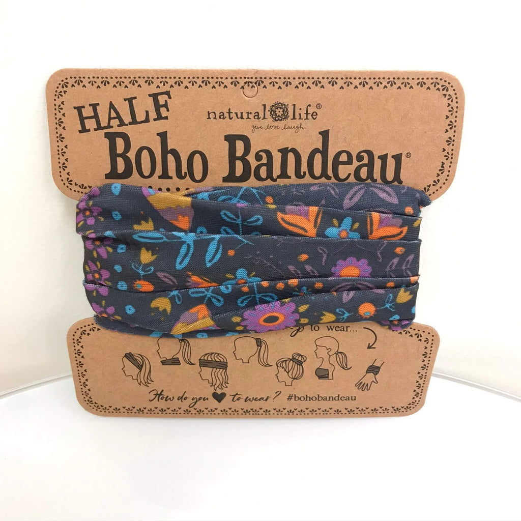 Natural Life Boho Bandeau (Half) Grey Floral Mandala makes the perfect hair accessory or face covering BBW265