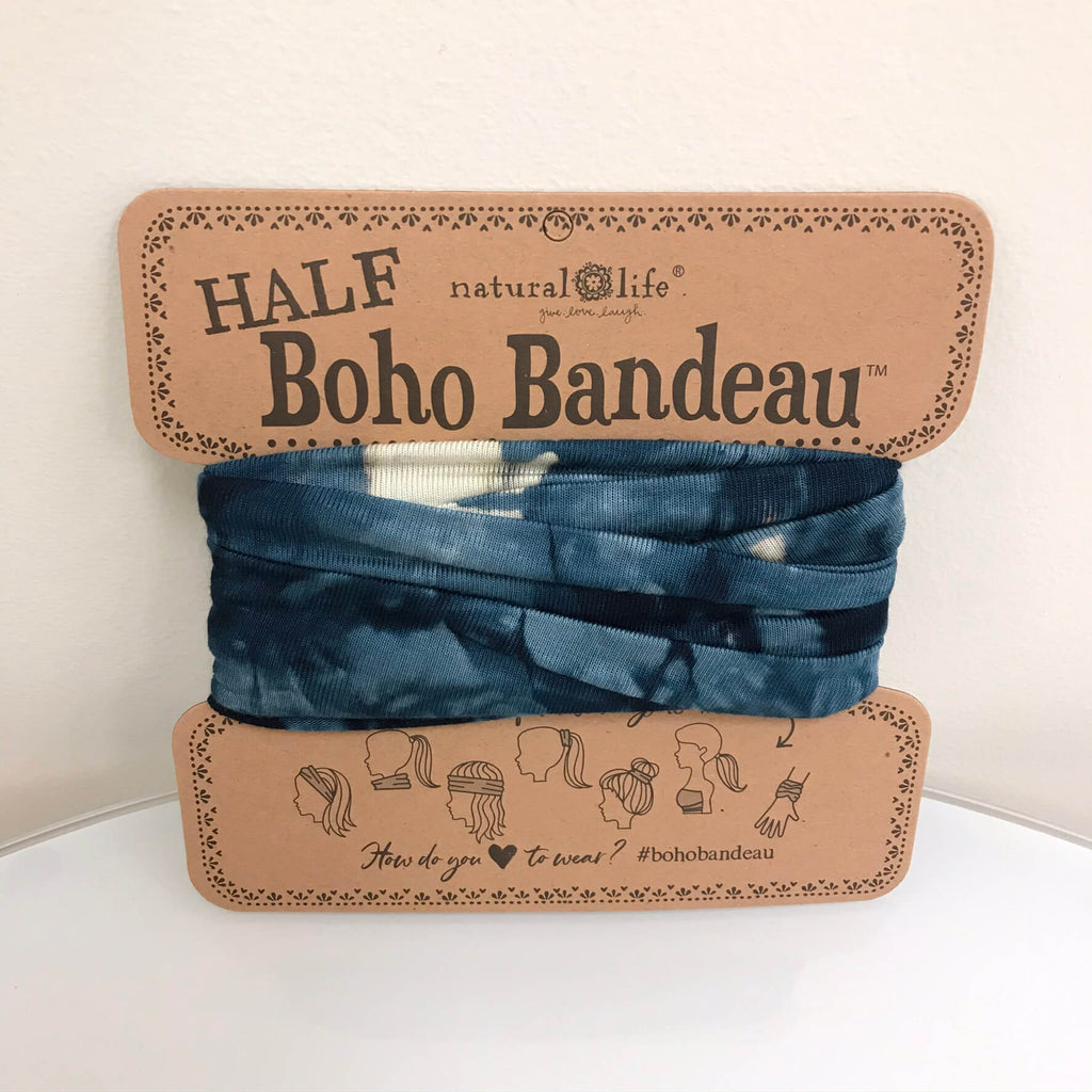 Natural Life Boho Bandeau (Half) Indigo Cream Tie Dye makes the perfect hair accessory or face covering BBW188