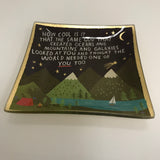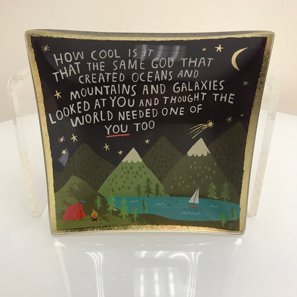 Natural Life Glass Tray has a great message " How cool is it that the same god that created oceans and mountains and galaxies looked at you and thought the world needed one of You too" GLST096