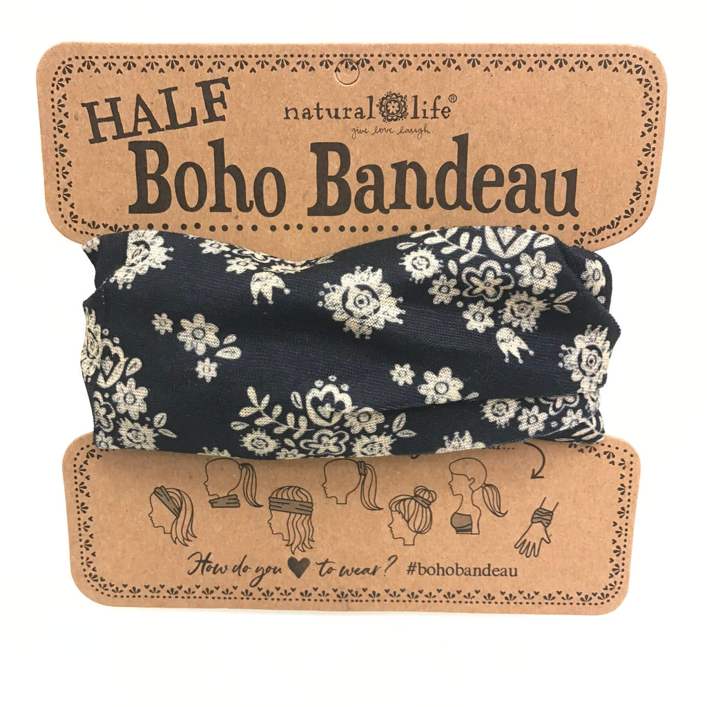 Natural Life Boho Bandeau (Half) - Black White Floral BBW038
