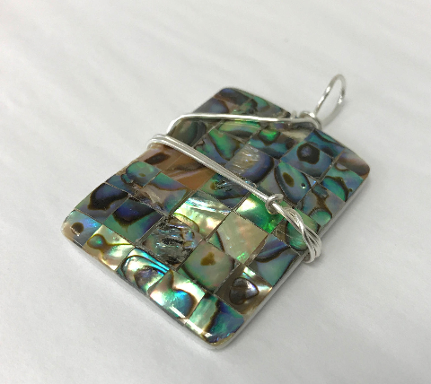 Sterling Silver Wrapped Pendant - Abalone Iridescent Shell Stone