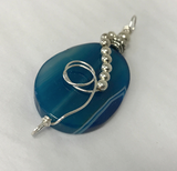 Sterling Silver Wrapped Pendant - Oval Blue Quartz Stone