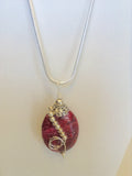 Sterling Wire Wrapped Pendant - Oval Fuchsia Crazy Lace Agate Stone