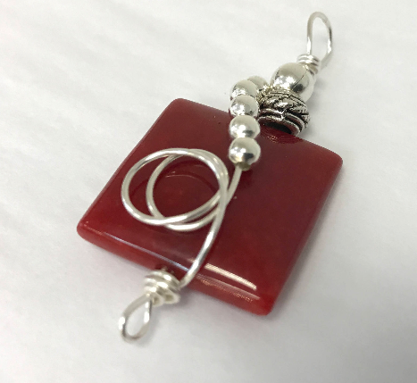 Sterling Wire Wrapped Pendant - Square Red Jade Stone