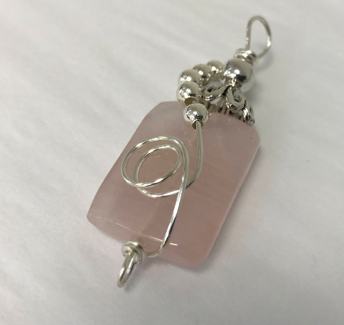 Sterling Silver Wrapped Pendant - Rectangle Light Pink Rose Quartz