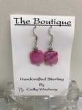 Accessories Boutique Earrings Silver Dark Fuchsia Crazy Lace Agate Square Handmade