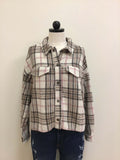 She and Sky Jacket Cream Brown Plaid Long Sleeve